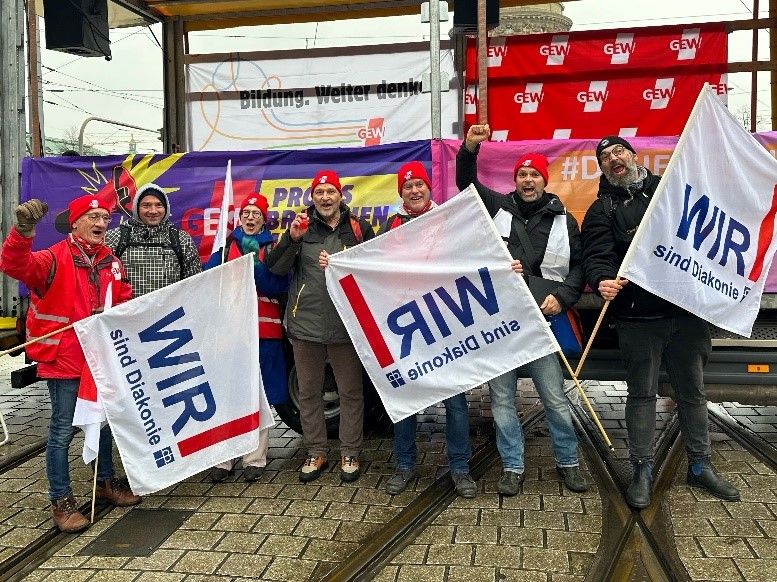 Vor etwas mehr als 3 Jahren wurden diakonische Schulen zum ersten Mal im Rahmen der TV-L Runde (Tarifvertrag der Länder) zum Partizipationsstreik aufgerufen. Nun war es wieder so weit: die GEW rief und Lehrkräfte aus diakonischen Schulen kamen und streikten!