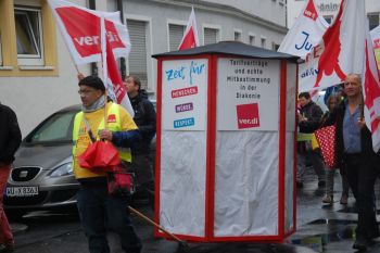 Nicht mit uns! Das lassen wir uns nicht gefallen! Gleiche Rechte wie im Betriebsverfassungsgesetz! "Die Kirchen haben schon vor 70 Jahren versprochen, ein mit den weltlichen Regeln vergleichbares Recht zu schaffen - davon sind sie immer noch weit entfernt." betonte Uli Maier gegenüber der Presse.