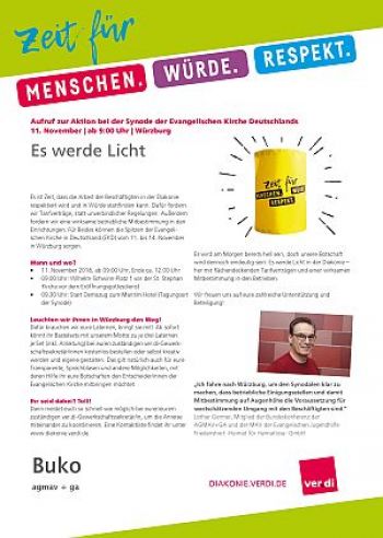 Der neueste Streich ist, dass die Mitbestimmung der MAV bei der Arbeitszeit erheblich eingeschränkt werden soll. Und das ist nur Beispiele der zahlreichen Verschlechterungen, die die Synode beschließen könnte.Diese Verschlechterungen müssen unbedingt verhindert werden!