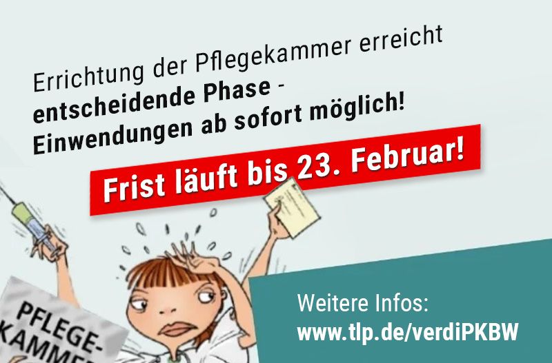 Am 8. Januar 2024 hat der Gründungsausschuss der Landespflegekammer Baden-Württemberg an alle zur Registrierung vorgesehenen Pflegefachpersonen Anschreiben verschickt. Das Anschreiben enthält eine Information über die anstehende Registrierung, eine Auflistung erhoffter Vorteile einer Pflegekammer und Hinweise zur Möglichkeit der Einwendung gegen die Registrierung