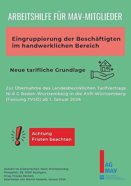 Unsere neue AGMAV-Arbeitshilfe zur Eingruppierung der Beschäftigten im handwerklichen Bereich ist ab sofort auf unserer Website im Menübereich Service --> Arbeitshilfen --> AVR abrufbar.