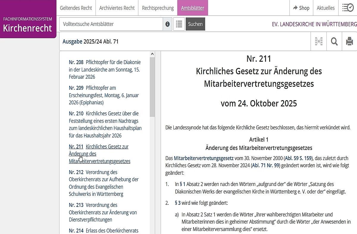 Mit Veröffentlichung des MVG.Württemberg im Amtsblatt WEB LINK der evangelischen Kirche in Württemberg tritt dieses in Kraft.