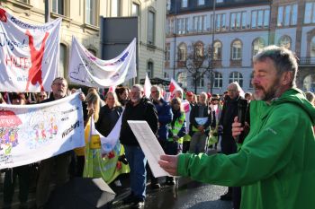 Nicht mit uns! Das lassen wir uns nicht gefallen! Gleiche Rechte wie im Betriebsverfassungsgesetz! "Die Kirchen haben schon vor 70 Jahren versprochen, ein mit den weltlichen Regeln vergleichbares Recht zu schaffen - davon sind sie immer noch weit entfernt." betonte Uli Maier gegenüber der Presse.